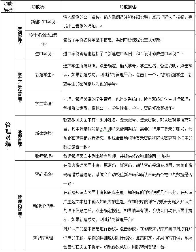 整個平臺(tai)系(xi)統(tong)(tong)的目標(biao)是建立(li)一個國際貿易的輔助教學系(xi)統(tong)(tong),并能將國際貿易教學過程中所需要的各實踐點(dian)進(jin)行較好的體現。