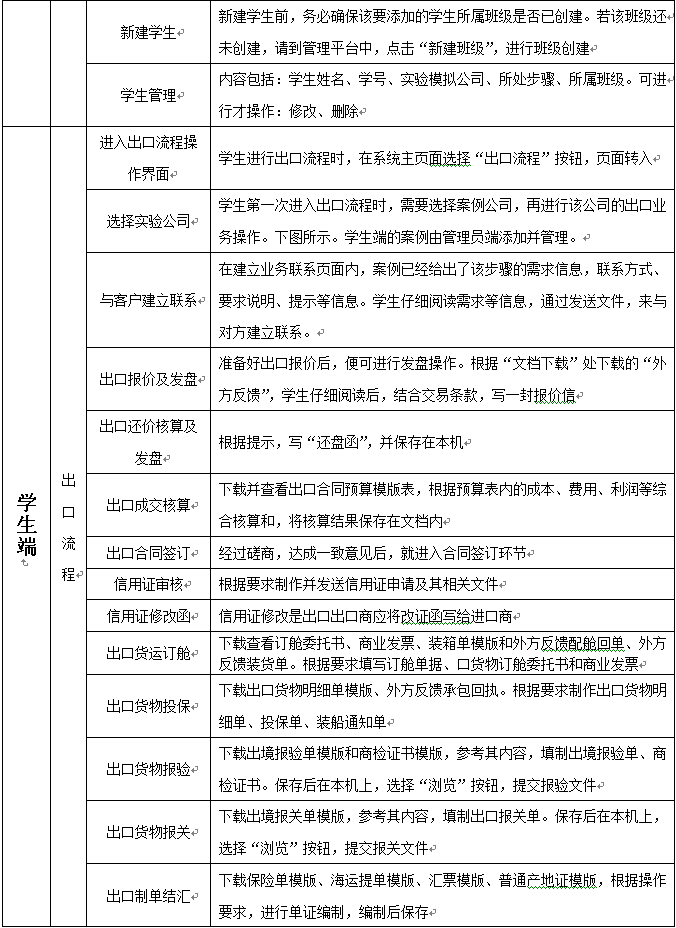 本教(jiao)學(xue)平臺軟件可(ke)以配合(he)國際貿易(yi)實(shi)務(wu)或者(zhe)進(jin)出口實(shi)務(wu)課程,在教(jiao)學(xue)過程中(zhong)同步進(jin)行上機操(cao)(cao)作(zuo)(zuo)實(shi)習。也可(ke)用作(zuo)(zuo)課堂(tang)教(jiao)學(xue)完畢后,讓學(xue)生進(jin)行整體(ti)流程的上機操(cao)(cao)作(zuo)(zuo)實(shi)習。