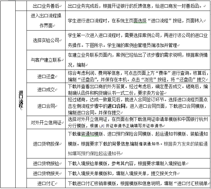 12.以(yi)案例(li)教(jiao)學為(wei)中心。通(tong)過精心設計的(de)多個(ge)完整的(de)案例(li),供(gong)學生練(lian)習(xi)和了解實際外貿過程中的(de)所需要的(de)函電、單證以(yi)及相關內容。系統本(ben)身提(ti)供(gong)多個(ge)設定案例(li)流(liu)程,且系統允許教(jiao)師自(zi)行修改(gai)這些(xie)案例(li)流(liu)程。教(jiao)師也可(ke)自(zi)己(ji)建立新的(de)案例(li)流(liu)程,以(yi)方(fang)便不同學校教(jiao)學使(shi)用。