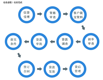 實訓主體(ti)分五類流程(cheng):短期貸(dai)款(kuan)、長期貸(dai)款(kuan)、票(piao)據貼(tie)現、個人(ren)(ren)住房抵押貸(dai)款(kuan)、個人(ren)(ren)汽(qi)車消費貸(dai)款(kuan)。提供靈(ling)活(huo)的業務流程(cheng)控制,包括信貸(dai)受理、資格審查(cha)、貸(dai)款(kuan)調查(cha)、貸(dai)款(kuan)審批(pi)、落實條件、簽訂合同、貸(dai)款(kuan)發放、貸(dai)后管理等步驟。