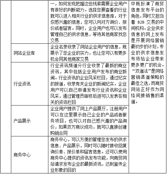 (3)商(shang)貿型網站(zhan):供求信(xin)息 企業名錄 行業咨(zi)詢 產品展(zhan)示 商(shang)務(wu)中心