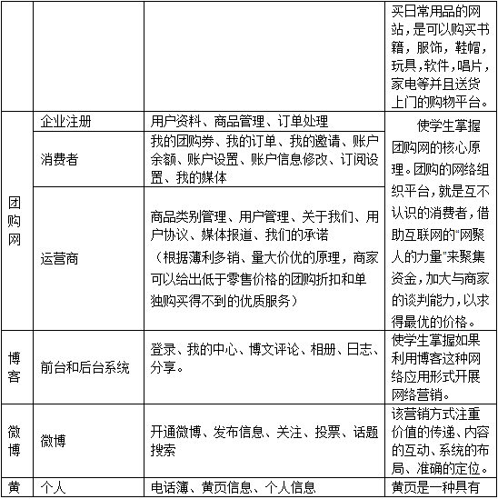 5、通過學(xue)生的(de)分組,開展各(ge)(ge)式各(ge)(ge)樣(yang)的(de)網(wang)絡(luo)營(ying)(ying)(ying)(ying)銷(xiao)活動(dong)的(de)流程,體(ti)(ti)會不(bu)同(tong)層次的(de)網(wang)絡(luo)營(ying)(ying)(ying)(ying)銷(xiao)給(gei)企業帶(dai)來的(de)機遇。而(er)普通消費者也(ye)可以通過進(jin)入網(wang)絡(luo)環(huan)境,訪問上述網(wang)站,使用個(ge)人郵件服務(wu)等感受到企業網(wang)絡(luo)營(ying)(ying)(ying)(ying)銷(xiao)的(de)影響(xiang)力。學(xue)生通過親身操作軟件,可以體(ti)(ti)會到網(wang)絡(luo)營(ying)(ying)(ying)(ying)銷(xiao)與傳統營(ying)(ying)(ying)(ying)銷(xiao)的(de)區別與聯系,了解(jie)各(ge)(ge)種網(wang)絡(luo)營(ying)(ying)(ying)(ying)銷(xiao)策略以及(ji)如何具體(ti)(ti)實施。
