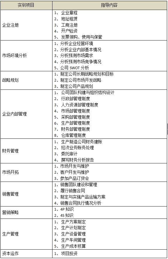 考慮經管(guan)學(xue)(xue)院各專業(ye)(ye)(ye)學(xue)(xue)生(sheng)(sheng)(sheng)去企(qi)(qi)業(ye)(ye)(ye)頂崗(gang)實習有一定難度,因(yin)為,學(xue)(xue)生(sheng)(sheng)(sheng)如(ru)果要(yao)(yao)真正(zheng)頂崗(gang)的話(hua),那么就一定要(yao)(yao)接觸企(qi)(qi)業(ye)(ye)(ye)的商業(ye)(ye)(ye)秘密,特別是企(qi)(qi)業(ye)(ye)(ye)銷售與財務等機密數據,這是公(gong)司不愿意接收學(xue)(xue)生(sheng)(sheng)(sheng)頂崗(gang)實習的主要(yao)(yao)原因(yin);剛畢業(ye)(ye)(ye)的學(xue)(xue)生(sheng)(sheng)(sheng)在(zai)企(qi)(qi)業(ye)(ye)(ye)很難找到(dao)與對(dui)口專業(ye)(ye)(ye)技(ji)能(neng)培養(yang)(yang)目標(biao)一致的工作崗(gang)位;所以即(ji)使(shi)企(qi)(qi)業(ye)(ye)(ye)接收學(xue)(xue)生(sheng)(sheng)(sheng)實訓,也只是讓學(xue)(xue)生(sheng)(sheng)(sheng)做(zuo)一些(xie)企(qi)(qi)業(ye)(ye)(ye)業(ye)(ye)(ye)務外圍的事情,難以真正(zheng)培養(yang)(yang)學(xue)(xue)生(sheng)(sheng)(sheng)的專業(ye)(ye)(ye)基本技(ji)能(neng),因(yin)此建立跨專業(ye)(ye)(ye)綜合實訓平臺對(dui)人才(cai)培養(yang)(yang)尤(you)其重要(yao)(yao),使(shi)學(xue)(xue)生(sheng)(sheng)(sheng)畢業(ye)(ye)(ye)就能(neng)真正(zheng)學(xue)(xue)習到(dao)崗(gang)位技(ji)能(neng)知識,以增強到(dao)企(qi)(qi)業(ye)(ye)(ye)的崗(gang)位適應(ying)能(neng)力。