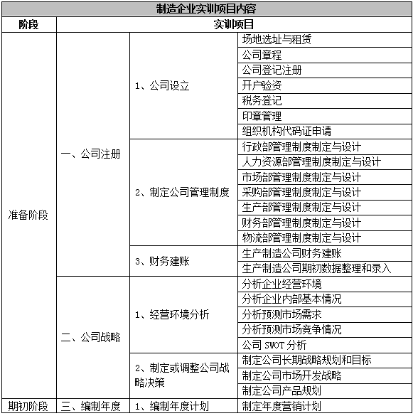 跨(kua)專(zhuan)業(ye)平臺(tai)主要由搭建(jian)平臺(tai)運(yun)(yun)行(xing)環境、制造企(qi)業(ye)運(yun)(yun)營、行(xing)政業(ye)務(wu)(wu)(wu)(wu)和金融(rong)業(ye)務(wu)(wu)(wu)(wu)等(deng)幾大部(bu)分(fen)組成。以現代制造行(xing)業(ye)為藍本(ben),設置總經理辦(ban)公(gong)室(shi)、銷售部(bu)、生產部(bu)、采購(gou)部(bu)、倉儲部(bu)、外(wai)貿部(bu)、市場(chang)部(bu)、財務(wu)(wu)(wu)(wu)部(bu)、人才資源部(bu)、企(qi)業(ye)投資融(rong)部(bu)等(deng)十大制造企(qi)業(ye)職(zhi)能部(bu)門(men)(men);真(zhen)實模擬(ni)行(xing)政辦(ban)事部(bu)門(men)(men),提(ti)供(gong)工(gong)商局(ju)(ju)、稅務(wu)(wu)(wu)(wu)局(ju)(ju)、會計(ji)事務(wu)(wu)(wu)(wu)所(suo)、銀行(xing)、物(wu)流(liu)、保(bao)險公(gong)司、貸代公(gong)司等(deng)辦(ban)事場(chang)所(suo);系統虛擬(ni)扮(ban)演公(gong)安局(ju)(ju)、質量(liang)與技術(shu)監督局(ju)(ju)、勞動與社(she)會保(bao)障(zhang)局(ju)(ju)、原材料供(gong)應商、海關(guan)、商檢、外(wai)匯管理局(ju)(ju)、船公(gong)司等(deng)服(fu)務(wu)(wu)(wu)(wu)性部(bu)門(men)(men)行(xing)業(ye)。攘括了與制造行(xing)業(ye)有關(guan)的所(suo)有相關(guan)行(xing)政辦(ban)事部(bu)門(men)(men)和服(fu)務(wu)(wu)(wu)(wu)性行(xing)業(ye)。