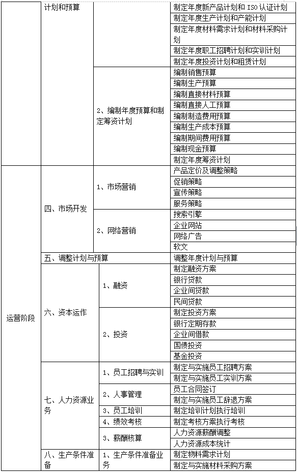 核心系統(tong)指的(de)是制造企(qi)(qi)業內部(bu)經營和管理(li)系統(tong),由總經理(li)辦公室、銷售部(bu)、生產部(bu)、采購部(bu)、倉儲部(bu)、外貿部(bu)、市(shi)場部(bu)、財務(wu)部(bu)、人才(cai)資(zi)源部(bu)、企(qi)(qi)業投資(zi)融資(zi)部(bu)等部(bu)門構成(cheng),下(xia)設21個崗(gang)位,各(ge)施其職,來完成(cheng)企(qi)(qi)業的(de)運作。